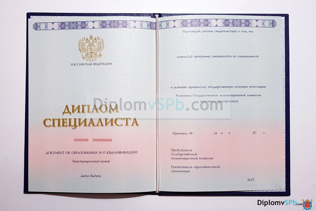 Специалист — академическая степень с нормативным сроком обучения в высшем учебном заведении — 5 лет. В графе «квалификация» имеют запись вида «Инженер», «Политолог», «Юрист», «Философ», «Социолог», «Физик», «Математик», «Педагог» и прочее в зависимости от направления, по которому проходило обучение. У нас Вы можете купить настоящий диплом специалиста, содержащий сведения об учебном заведении и полученном образовании, соответствующие выбранному периоду, ВУЗу и специальности. Гарантируем правильное заполнение, бесплатную доставку по СПб на следующий день, полную анонимность и оплату при получении.